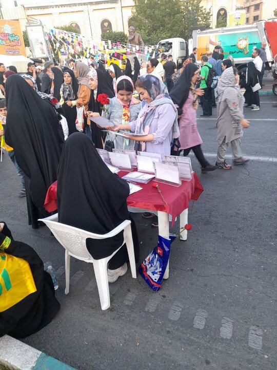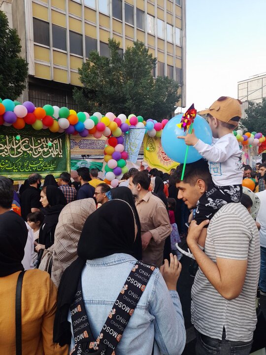 در میدان حضرت ولی عصر (عج)، عروسک محبوب شبکه پویاییها برنامه اجرا میکند و بسیاری از پدرها و مادرها ترجیح میدهند با کودکانشان در این میدان حضور داشته باشند. عشق امام رضا مرز نمیشناسد.