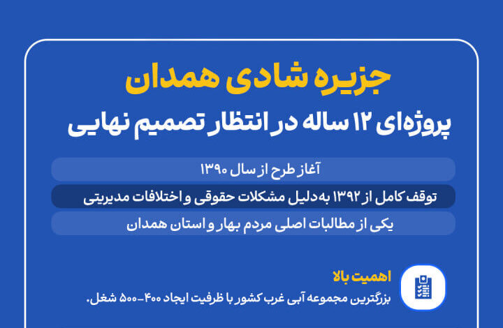 اینفوگرافیک؛ جزیره شادی همدان پروژهای ۱۲ ساله در بلاتکلیفی