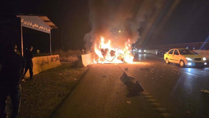 تصادف و حریق مرگبار یک خودرو در بزرگراه تهران ـ قم+ عکس – هشت صبح