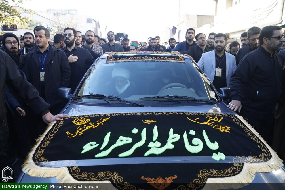 (تصاویر) دسته عزاداری شهادت حضرت زهرا(س) با حضور آیتالله وحید خراسانی