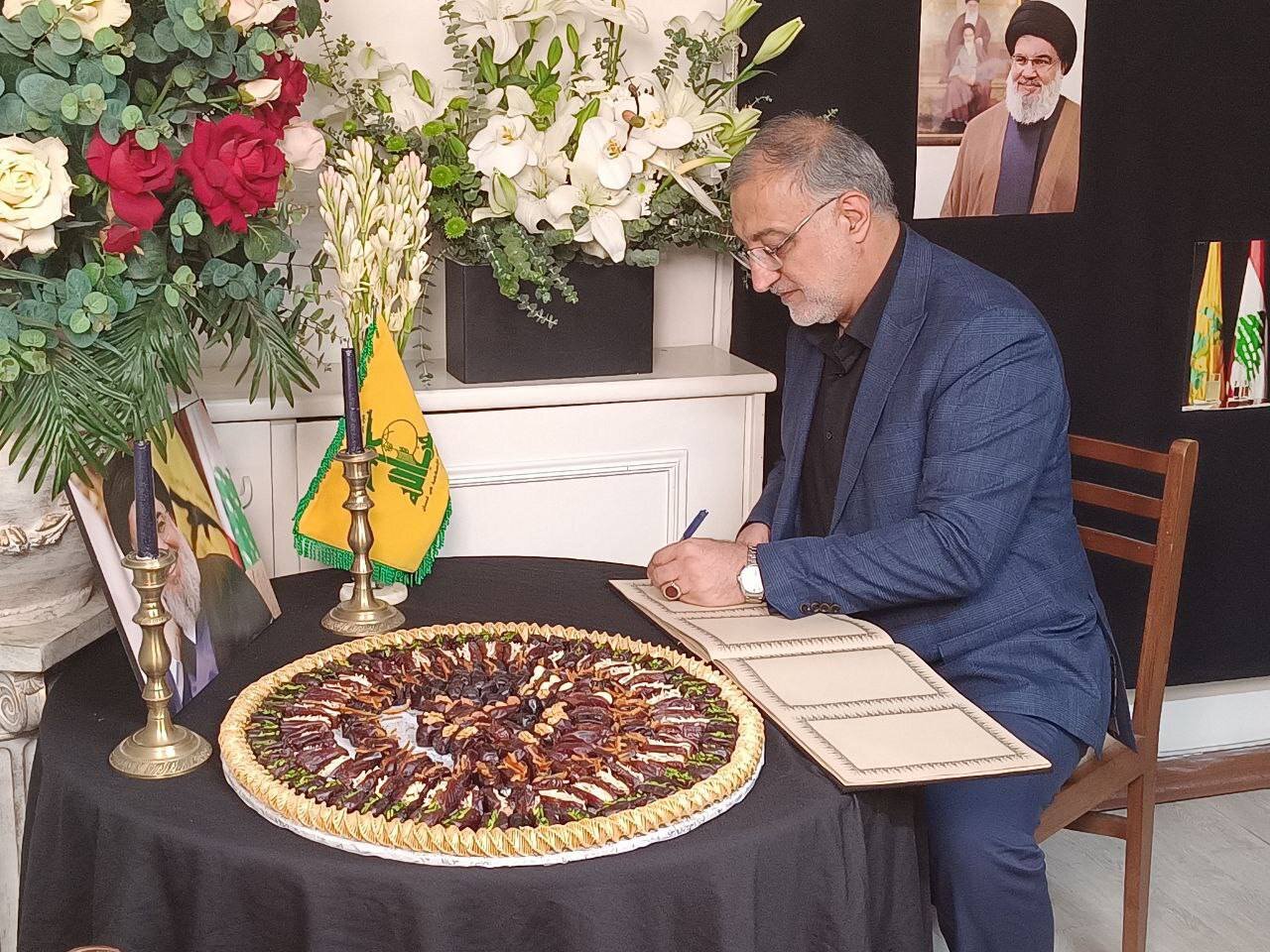 چمران و زاکانی همچنین دفتر یاد بود شهید سید حسن نصرالله را امضا کرد.