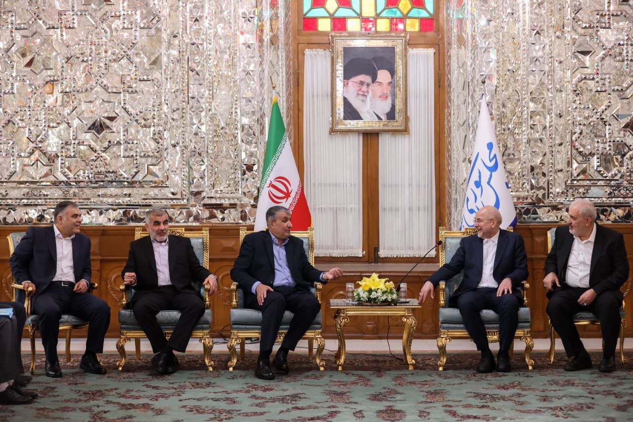 به گزارش خبرگزاری مهر، محمدباقر قالیباف رئیس مجلس شورای اسلامی در دیدار نوروزی صبح امروز (شنبه ۱۶ فروردین ماه ۱۴۰۴) اعضای هیئت دولت، وزرا، مسئولان دستگاههای اجرایی، استانداران و نمایندگان فعلی و ادوار مجلس شورای اسلامی ضمن آرزوی قبولی طاعات، عبادت و خوشبختی و سعادت برای ملت ایران و توفیق برای مسئولان نظام اسلامی در سال جدید گفت: رمز موفقیت و پیشرفت هرچه سریعتر کشور پایبندی به برنامه هفتم توسعه و هماهنگی و انسجام بین قوا و اجزا و ارکان کشور است.