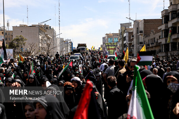 به گزارش خبرنگار مهر، راهپیمایی سراسری روز جهانی قدس با شعار «روز قدس، از طوفان الاقصی تا طوفان الاحرار» در بیش از در بیش از ۲ هزار نقطه کشور به طور همزمان از ساعت ۱۰ صبح امروز (۱۷ فروردین) آغاز شد.